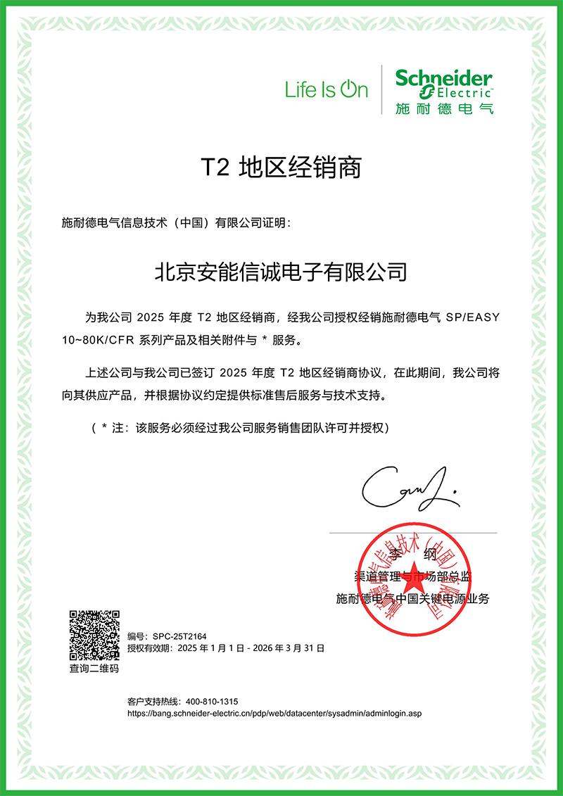 施耐德产品(2025年)授权代理证书